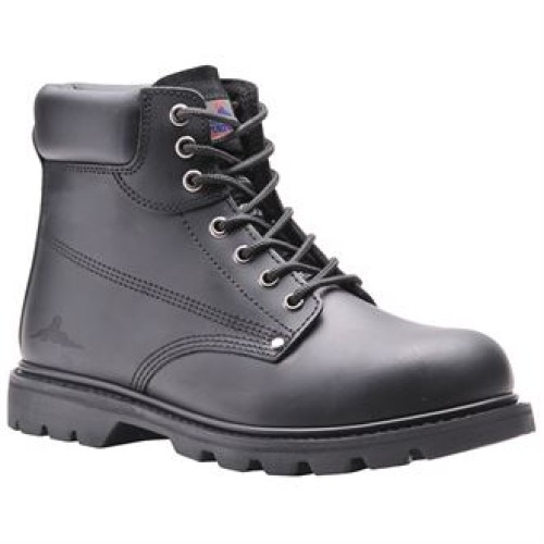 Goodyear welted safety boot with steel toecap and steel midsole. Padded collar and breathable lining for maximum comfort and durability. Heat and slip resistant outsole.