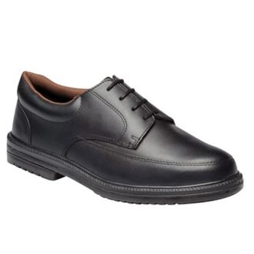 EN ISO 20345:2011 S1-P SRC. Four eyelet shoe. Breathable lining for extra comfort. Full length padded insock with heel support cup. Steel toe-cap to EN345 (200 joules). Steel midsole for underfoot protection. Dual density antistatic polyurethane sole. Sole resistant to oil.